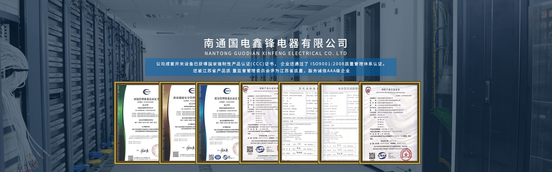 南通國(guó)電鑫鋒電器有限公司座落在有中國(guó)江蘇省南通市,南通是全國(guó)首批十四個(gè)沿海對(duì)外開放城市之一,是我國(guó) 民族紡織工業(yè)的搖籃和長(zhǎng)江沿線的港口城市,又是中國(guó)的體育之鄉(xiāng), 教育之鄉(xiāng)崛起中的南通是江海大地上一顆璀燦的明珠。 公司成立于2005年,是專業(yè)生產(chǎn)各類高低壓成套開關(guān)設(shè)備的專業(yè)廠家,公司成套開關(guān)設(shè)備已獲得國(guó)家強(qiáng)制性產(chǎn)品認(rèn)證(CCC)證書, 企業(yè)還通過了 ISO9001:2008質(zhì)量管理體系認(rèn)證。